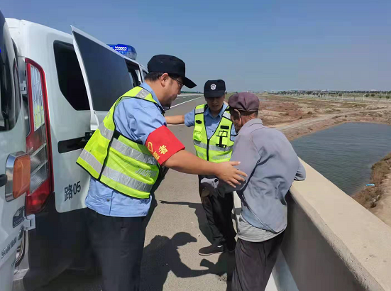 9月8日上午,路管分公司沿海大隊二中隊巡邏至天津方向K294附近時發(fā)現(xiàn)一拾荒老人,老人神志清楚,步履蹣跚,身體狀況不佳,通過老人說話語氣可以斷定是當(dāng)?shù)鼐用?,后?jīng)長時間多次詢問才確定老人為南排河鎮(zhèn)村民,但暫時無法聯(lián)系上老人家屬。