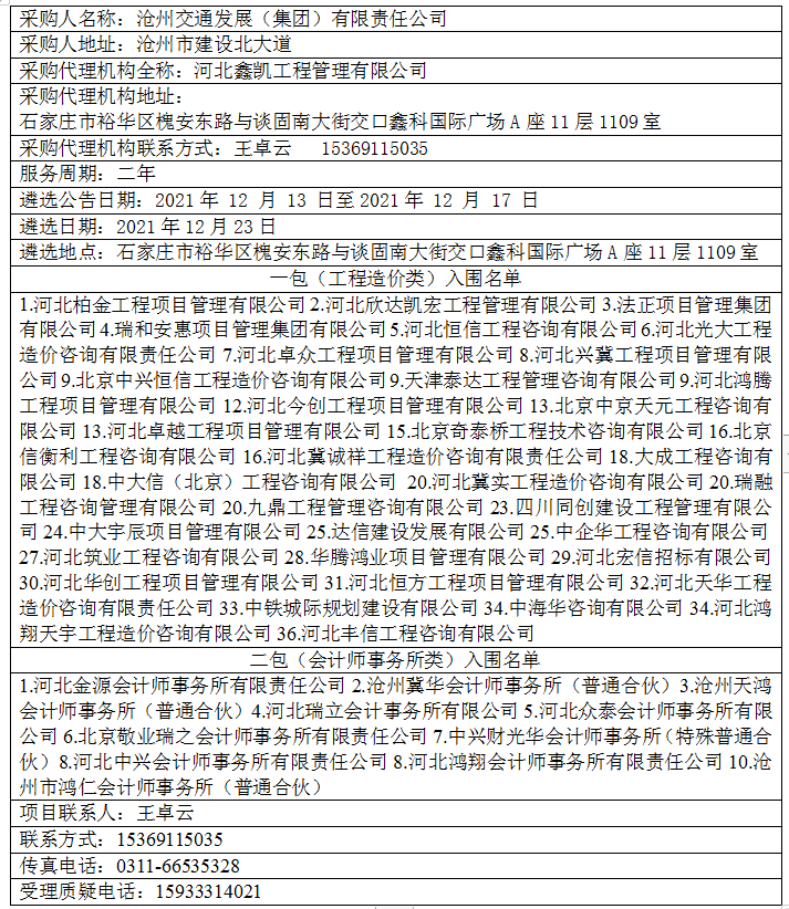 滄州交通發(fā)展(集團)有限責(zé)任公司審計機構(gòu)遴選項目遴選結(jié)果公告