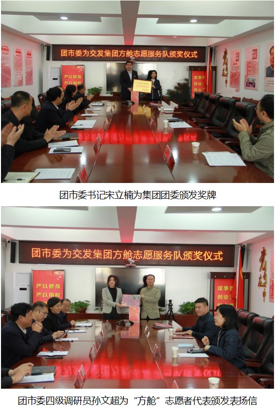 交發(fā)集團黨委委員、副總經(jīng)理李文靜主持會議,交發(fā)集團黨委副書記王澎簡要匯報了交發(fā)集團志愿服務(wù)活動開展情況;團市委孫文超調(diào)研員宣讀了感謝信;團市委宋立楠書記為交發(fā)集團頒發(fā)了獎牌,并對交發(fā)集團高度的社會責任感和廣大干部職工勇于擔當、敢于奉獻的精神給予肯定和贊揚。交發(fā)集團黨委書記、董事長劉俊德、黨委副書記、副總經(jīng)理楊正宇以及集團相關(guān)部室領(lǐng)導和志愿者代表參加會議。