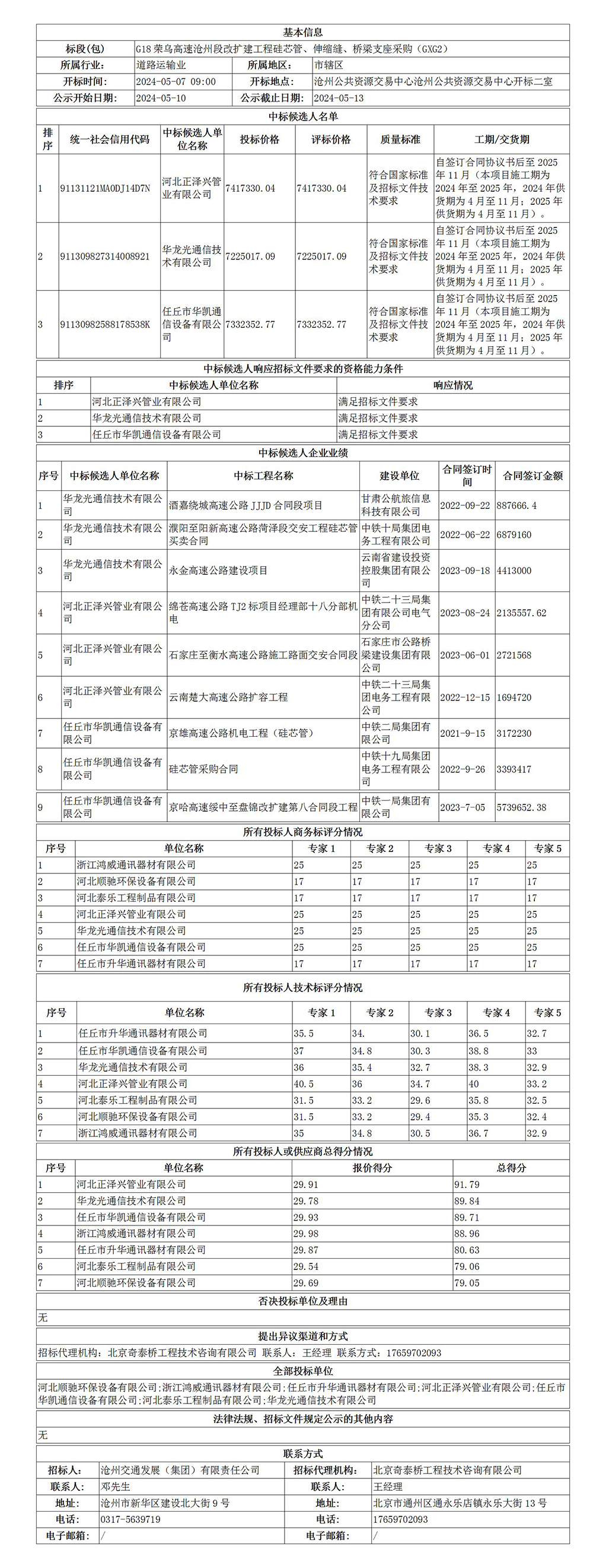 G18榮烏高速滄州段改擴(kuò)建工程硅芯管、伸縮縫、橋梁支座采購(GXG2)中標(biāo)候選人公示