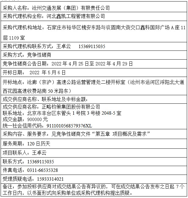 滄州交通發(fā)展(集團)有限公司財務管控體系優(yōu)化咨詢項目成交結果公告