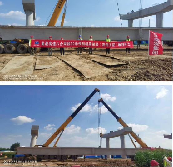 8月28日,曲港高速公路L8標(biāo)30米預(yù)制箱梁架精準(zhǔn)落位,代表著該項(xiàng)工程從橋梁墩身逐步轉(zhuǎn)入橋梁上部結(jié)構(gòu)施工,標(biāo)志著曲港高速項(xiàng)目施工進(jìn)入了新的階段,邁進(jìn)換擋提速期。