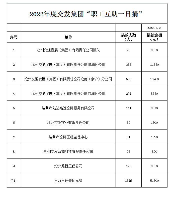 2022年交發(fā)集團(tuán)職工互助一日捐公示表