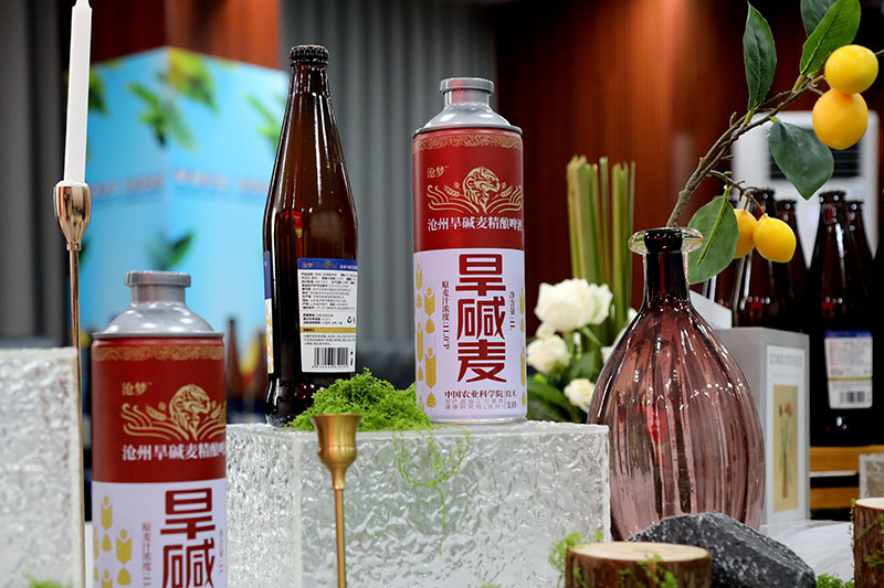 活動(dòng)現(xiàn)場(chǎng),通過(guò)宣傳片,旱堿麥種植場(chǎng)景、創(chuàng)新工藝與品牌文化首次全景呈現(xiàn);滄州交發(fā)集團(tuán)黨委委員、副總經(jīng)理李文靜闡釋產(chǎn)業(yè)合作愿景,中國(guó)農(nóng)科院加工研究院常務(wù)副院長(zhǎng)董維詳解旱堿麥技術(shù)突破與產(chǎn)業(yè)價(jià)值;滄州籍籃球運(yùn)動(dòng)員孫悅的宣傳視頻同步亮相,為家鄉(xiāng)特色產(chǎn)業(yè)助力。此次推出的兩款“滄夢(mèng)”旱堿麥精釀啤酒,精選黃驊本土捷麥19旱堿麥芽,融合山東泰山分支的天然軟水,依托農(nóng)科院頂尖技術(shù)的加持,通過(guò)精密控溫發(fā)酵工藝,將鹽堿地特色農(nóng)作物轉(zhuǎn)化為兼具醇厚口感與滄州文化底蘊(yùn)的精品佳釀。